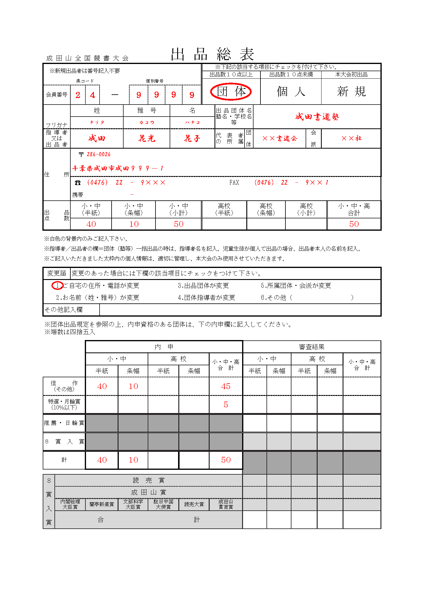 ![]() 表示確認用イメージ | 出品総表 記入例 ▼ 出品総表(記入例).pdf(565KB) |